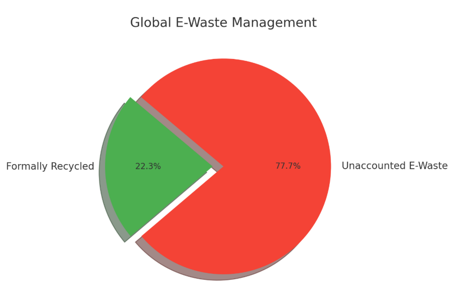 According to the Global E-waste Monitor 2024, the world generated approximately 62 million tonnes of electronic waste in 2022, marking an 82% increase since 2010, expected to increase by an additional 32%, reaching 82 million tonnes by 2030. However, only 22.3% of this e-waste was formally documented as collected and recycled, leaving a significant portion unaccounted for and increasing pollution risks to communities worldwide.